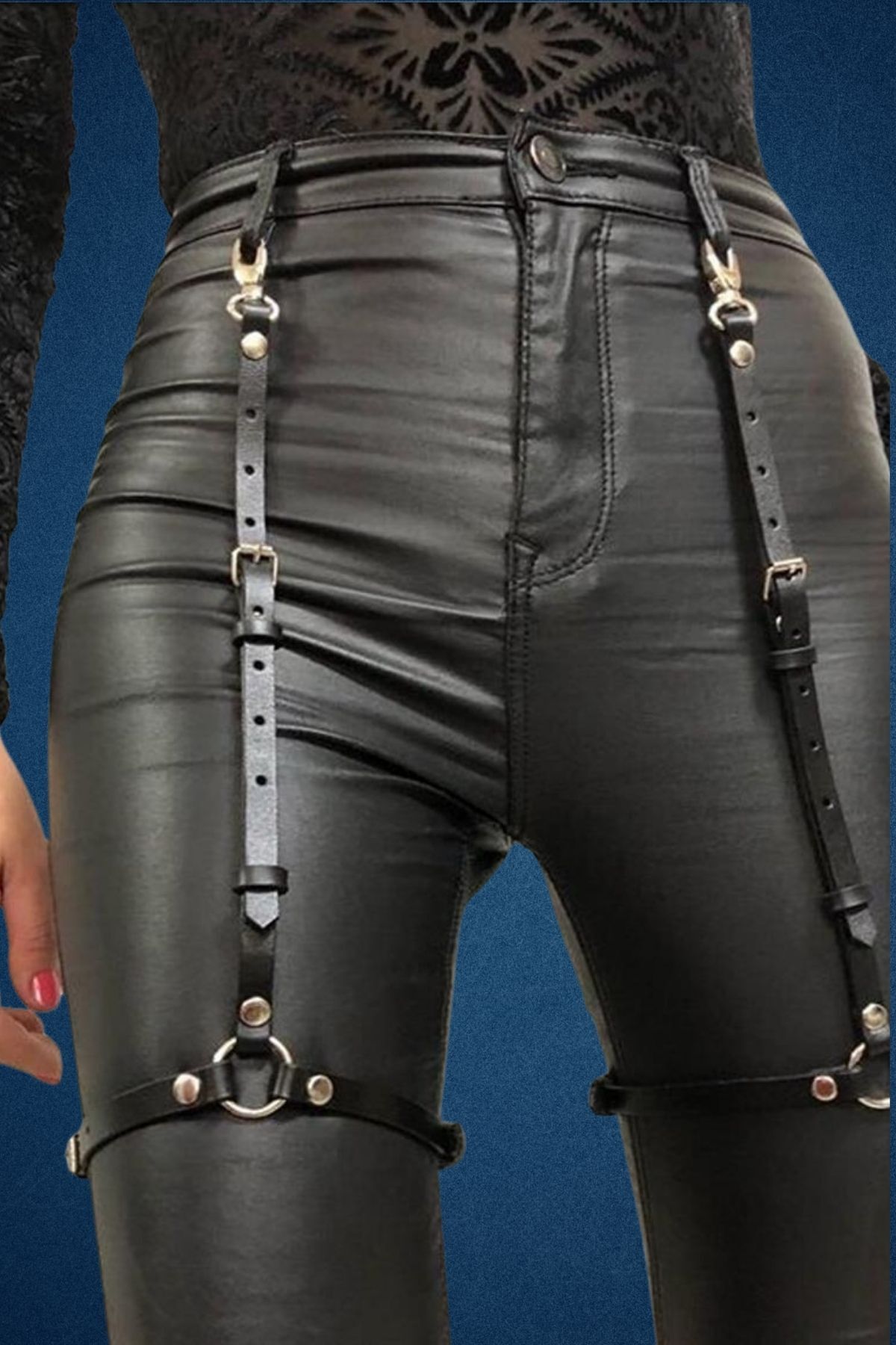 Bacak Ve Pantolon Üstüne Deri Harness Dekor Aksesuar