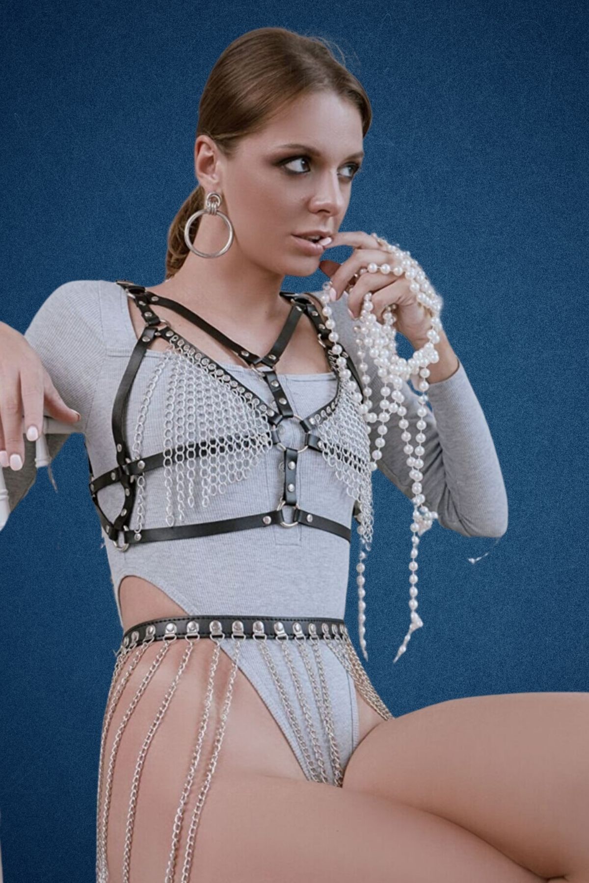 Deri Kostüm Harness Zincir Detaylı Aksesuar