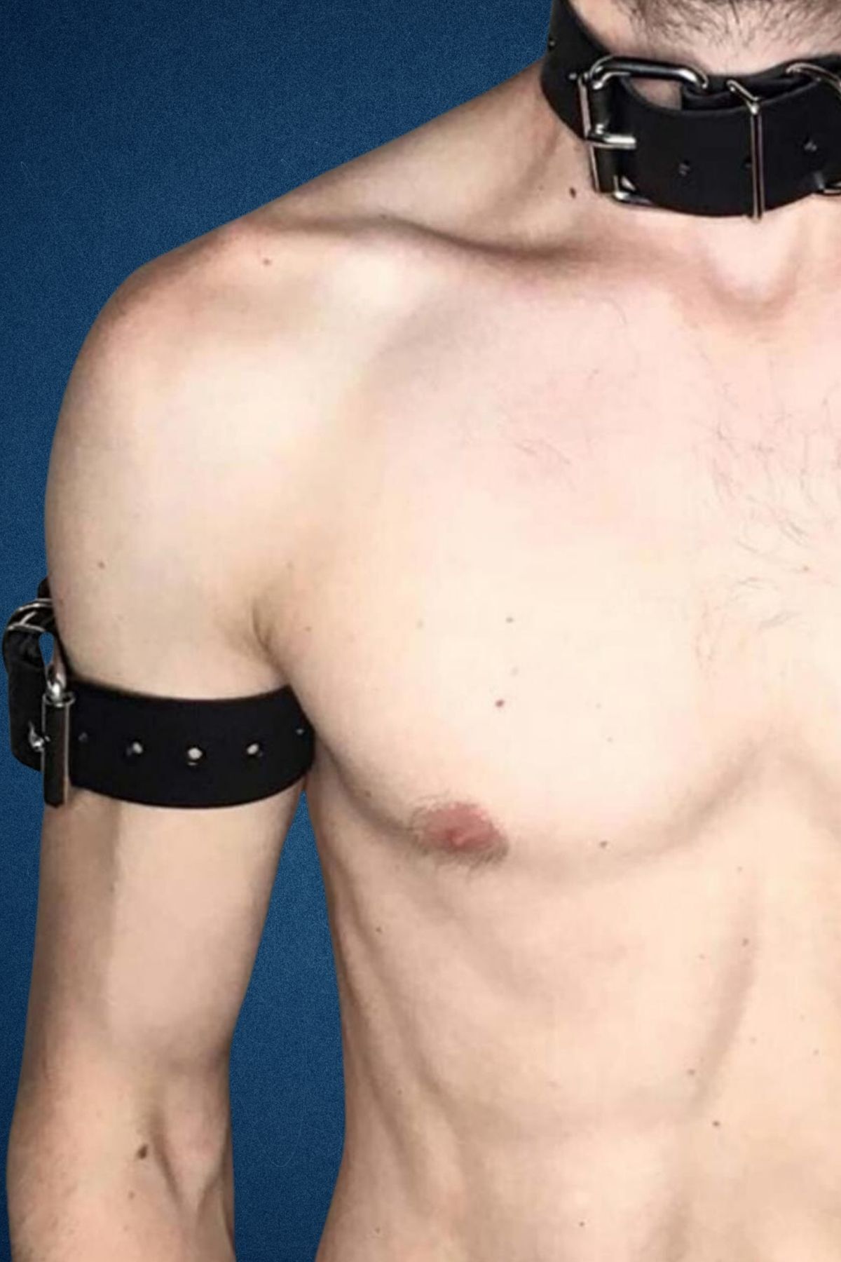 Erkek Kol Ve Tasma Deri Harness Fantezi Aksesuarı