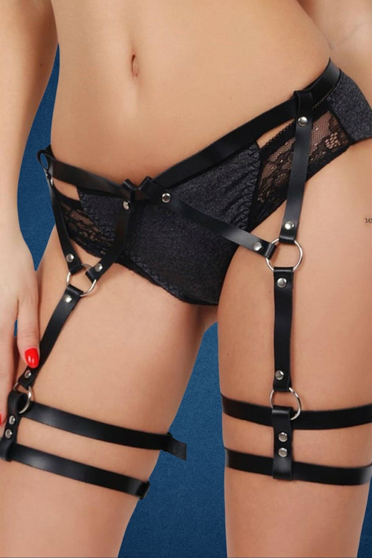 Harness Fantazi Deri Büstiyer-Jartiyer Aksesuar Takım 3