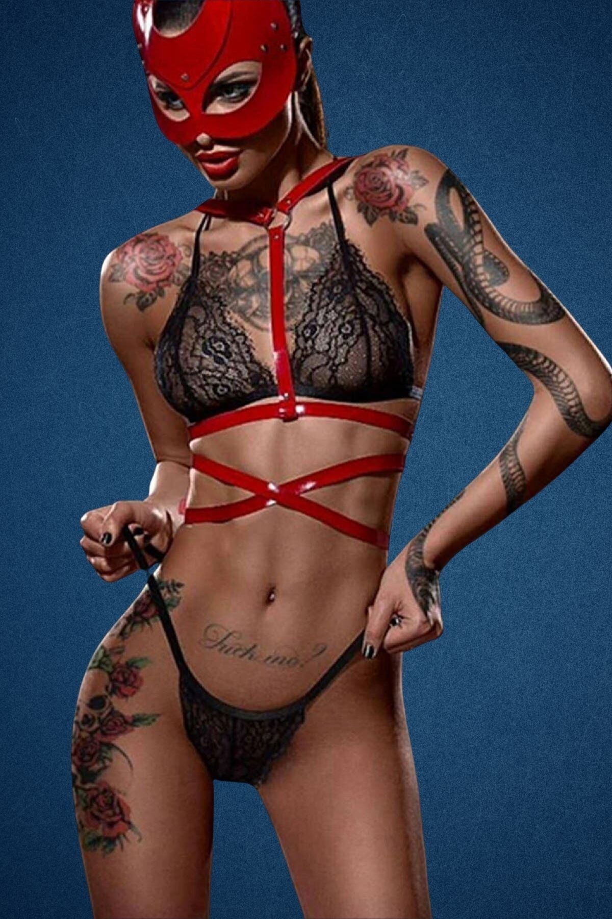 Harness Fantazi Deri Maske Büstiyer Aksesuar Takım