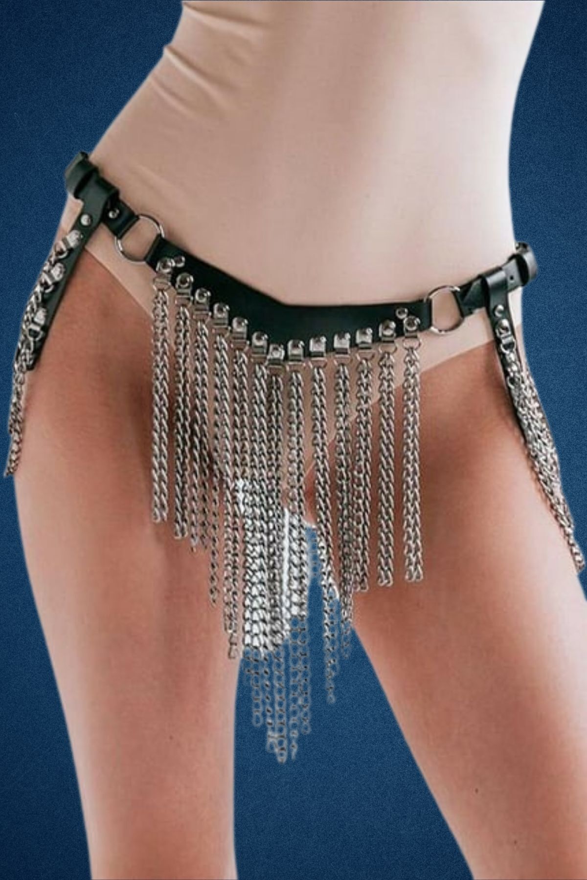 Zincir Detaylı Deri Harnes Fantazi Aksesuar